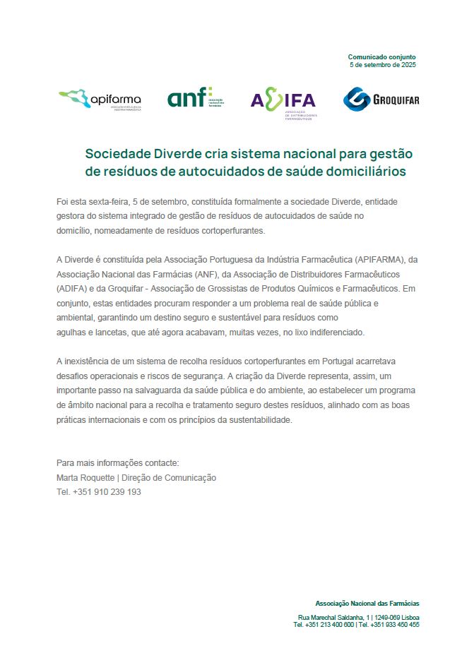 Sociedade Diverde cria sistema nacional para gestão de resíduos de autocuidados de saúde domiciliários