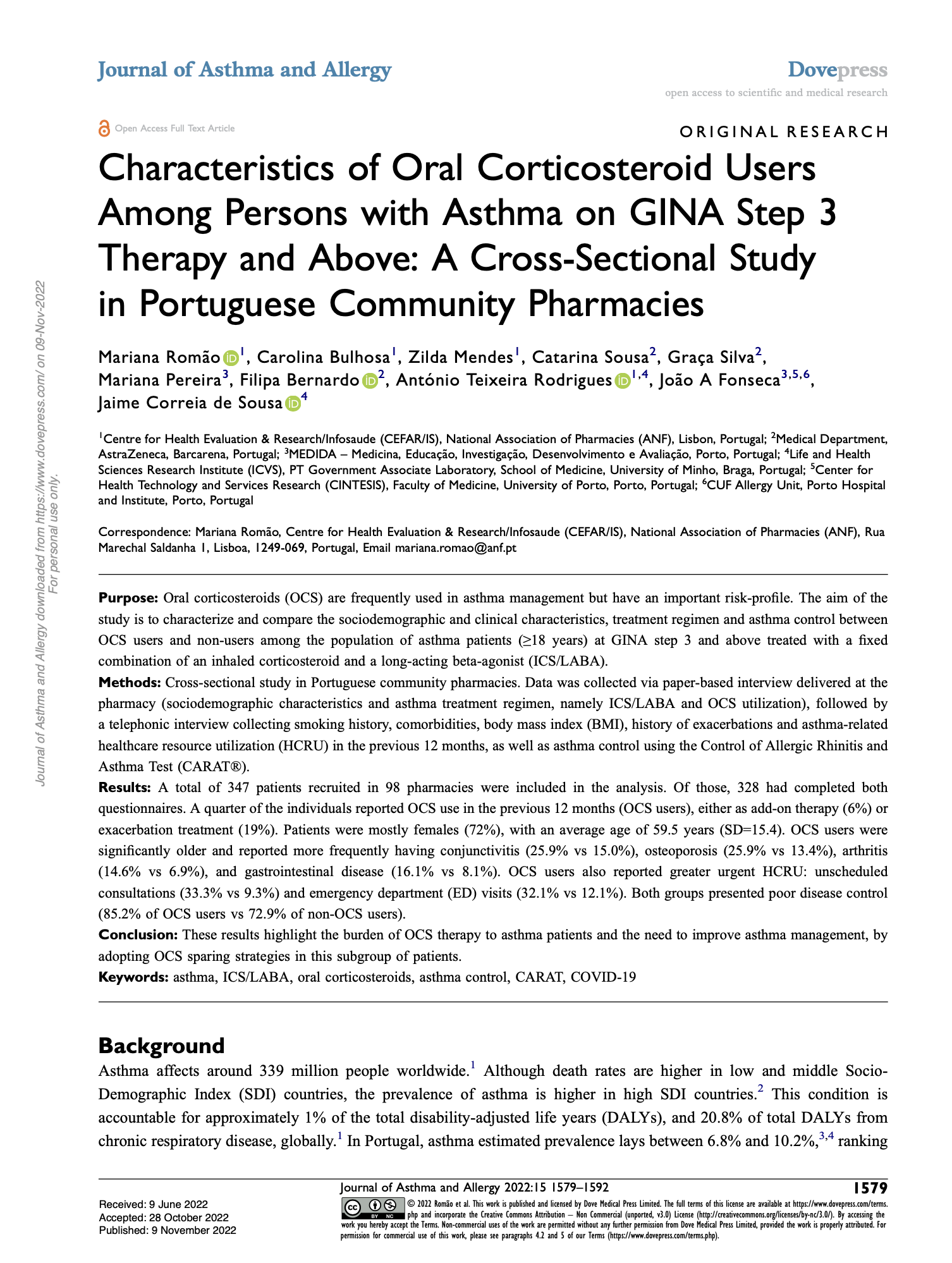 Authors: Romão, M., Bulhosa, C., Mendes, Z., Sousa, C., Silva, G., Pereira, M., Bernardo, F., Teixeira Rodrigues, A., Fonseca, J. A., & Correia de Sousa, J.