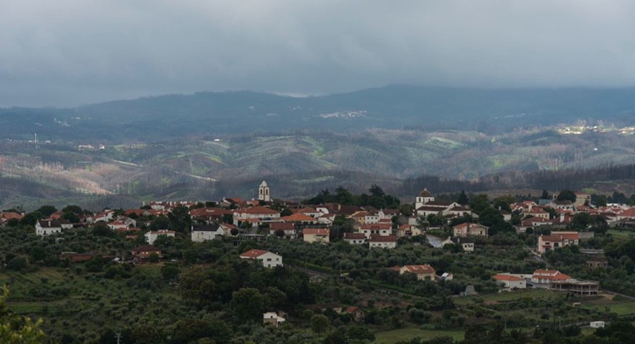 Pedrógão Grande aparece ao longe, envolto num mar de verde, o tom dos vários pincéis escolhidos pela Natureza para cobrir as encostas que desembocam no vale do rio Zêzere.