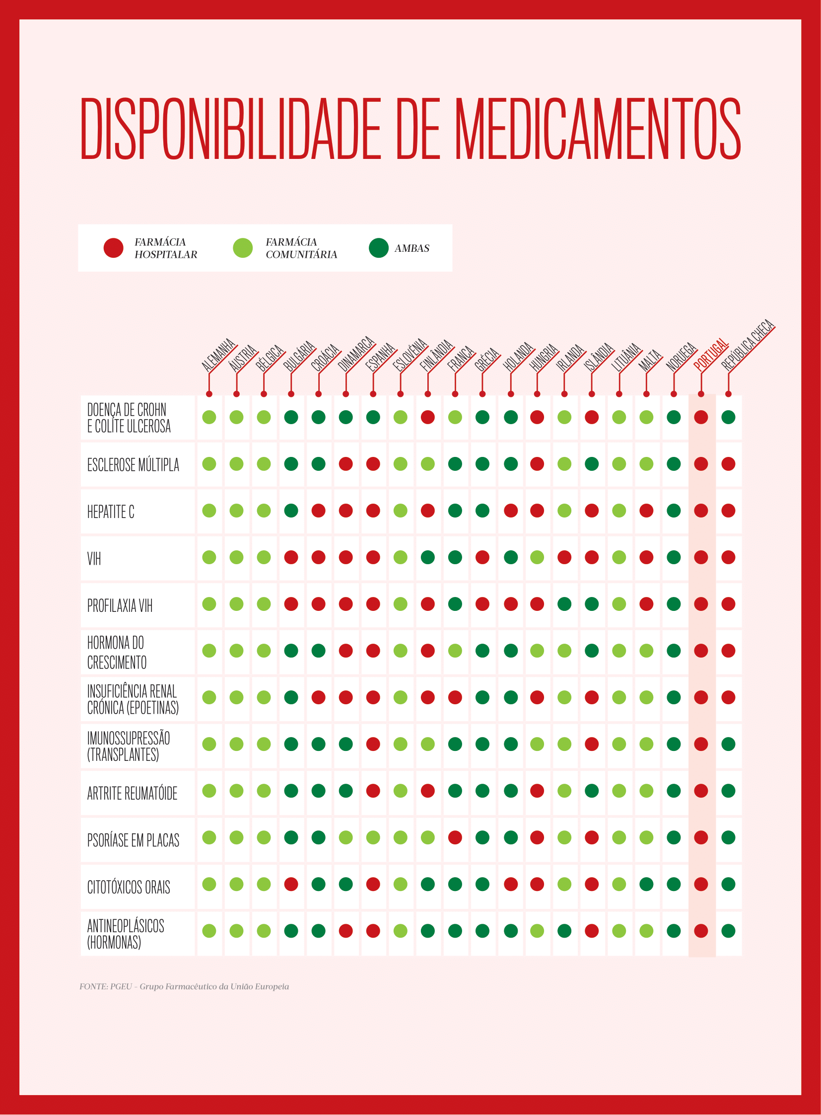 Portugal é o país de Europa com acesso mais difícil aos medicamentos mais recentes para o tratamento de muitas doenças. O Estado obriga milhares de doentes a perder dias de trabalho só para irem levantar medicamentos aos hospitais, sem nenhuma consulta médica ou razão clínica que justifique a viagem.