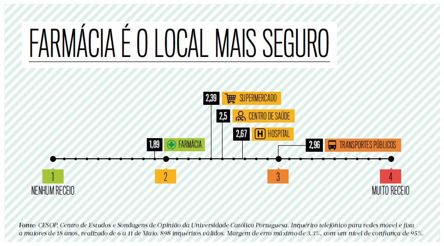 «Cá dentro, a farmácia está preparada para que a população não se contagie. Lá fora é que estamos sujeitos a tudo», afirma Isabel, enquanto desinfecta as mãos num dos dispensadores automáticos de gel colocados à saída.