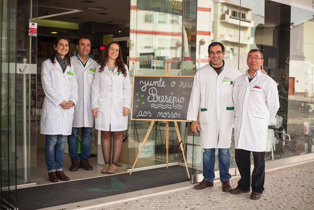 Nesta época, dezenas de presépios enchem a montra da Farmácia Dias da Silva, na Azambuja. São de múltiplas cores, formatos e até nacionalidades. A maioria foi emprestada pelos utentes, que responderam ao repto lançado pela farmácia. Junte o seu presépio aos nossos, lê-se num quadro de lousa à entrada. E as pessoas juntam! No final de Novembro, já perto de 70 presépios embelezavam a montra e faziam parar os transeuntes, curiosos. «Esperamos que até ao Natal cheguem muitos mais», diz Maria João Dias da Silva, proprietária da farmácia há 40 anos. «Toda a gente nos conhece e nós conhecemos toda a gente. É bom sentir esta proximidade e poder partilhar paixões comuns», sublinha.