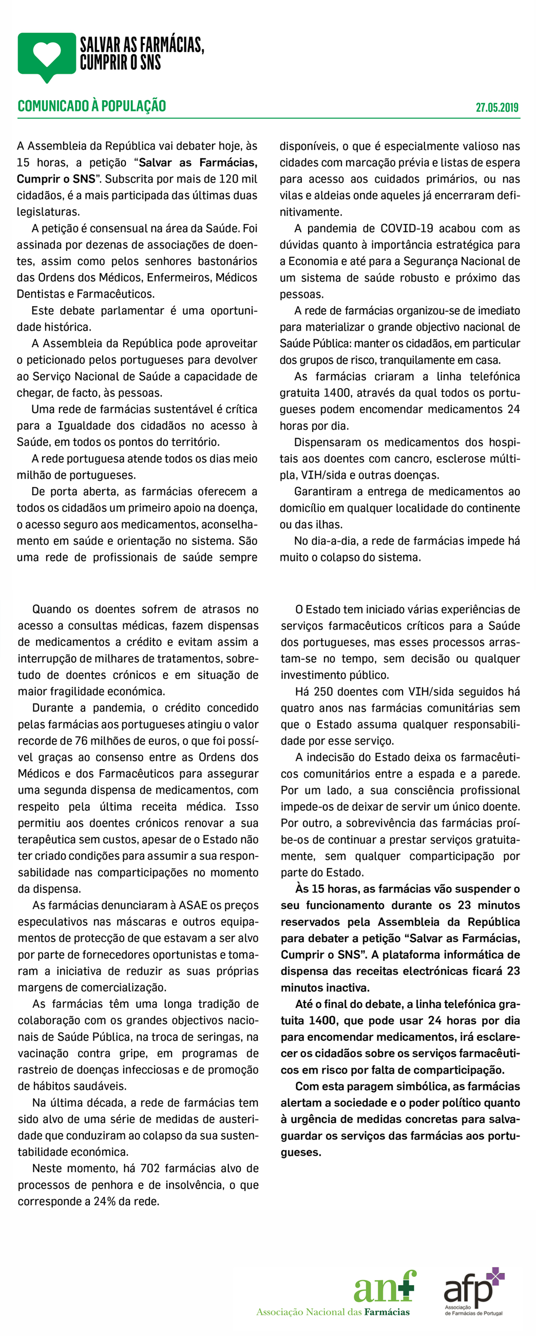 ​​​​​​​​​​​​​​​​Recorde aqui o comunicado das farmácias à população.