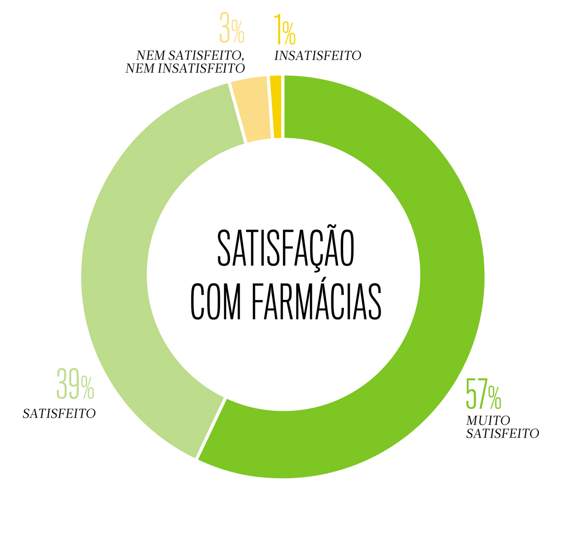 A farmácia é o local de prestação de cuidados de saúde com mais elevados níveis de satisfação. Uma sondagem nacional, com inquéritos porta a porta, realizada no passado mês de Março pelo Centro de Estudos e Sondagens de Opinião (CESOP) da Universidade Católica Portuguesa, revela que 96% dos portugueses estão satisfeitos com o serviço prestado pela sua farmácia. Apenas 1% dos inquiridos revelou insatisfação com a farmácia que usa mais, valor inferior à margem de erro da amostra (ver ficha técnica).