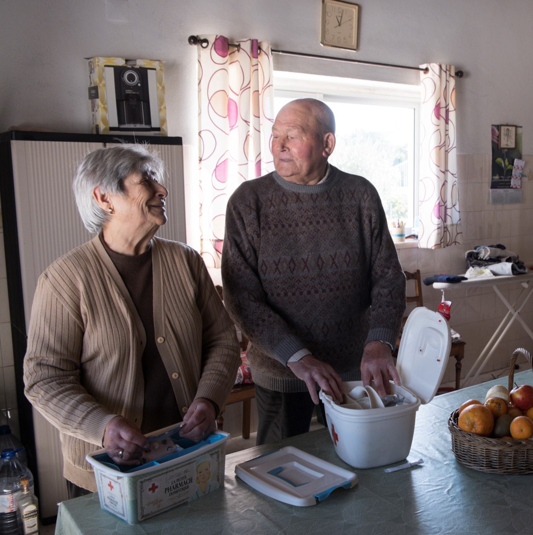 Isabel Pimenta, de 61 anos, e Víctor Teixeira Santos, de 64, sentem o mesmo. Víctor soma problemas crónicos de saúde: hipertensão, colesterol, pré-diabetes, problemas cardíacos. Recentemente, também teve síndroma vertiginoso. «Tenho de tomar bastantes medicamentos. Mas eles põem tudo: como e quando tomar».