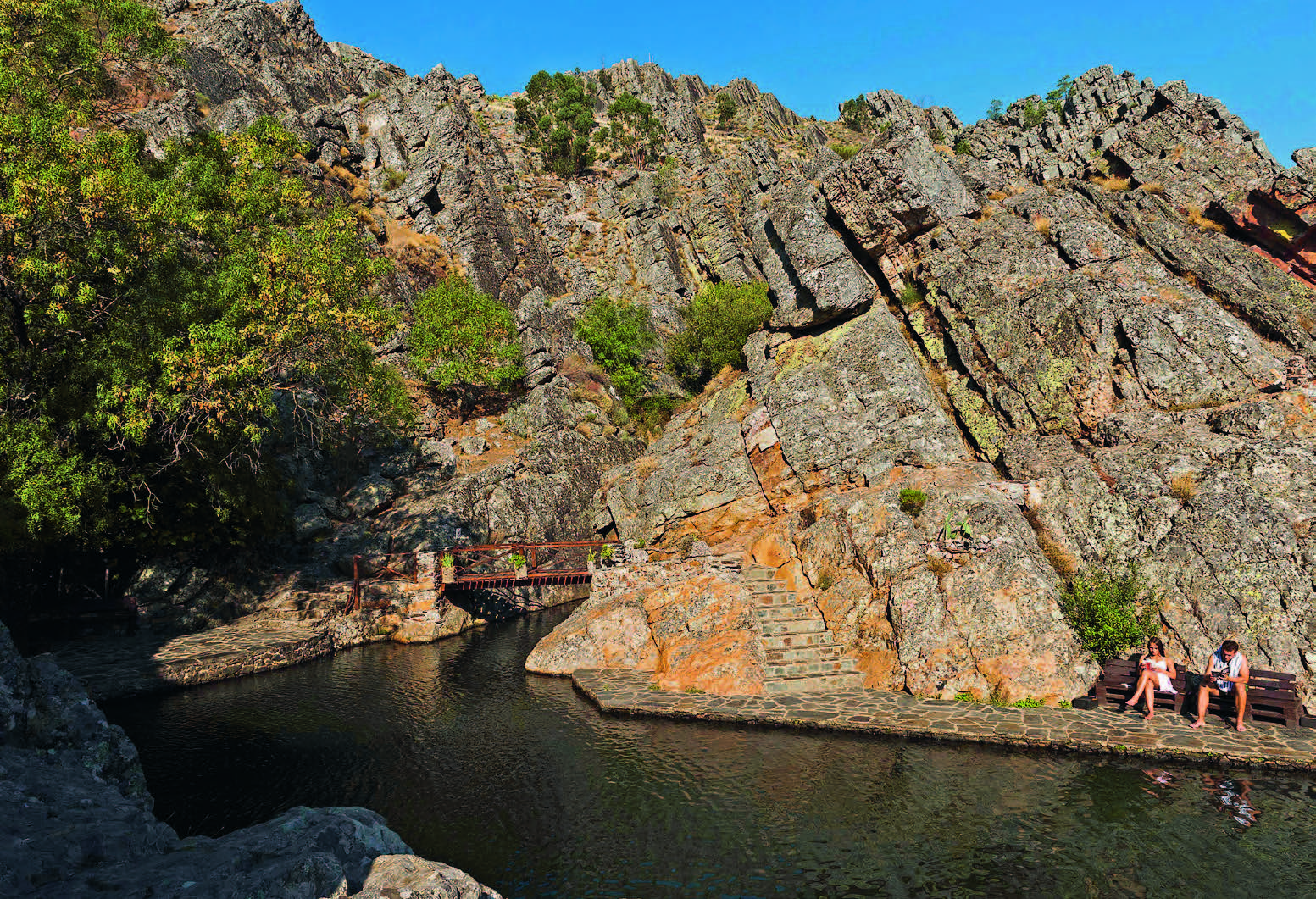 Custa a crer que há 480 milhões de anos o mar se espraiava por ali, a uma dúzia de quilómetros da fronteira com Espanha. Vestígios de trilobites, animais que habitavam os antigos oceanos, provam-no. É do mar que Sofia Valada tem mais saudades. Por isso, na impossibilidade de se encontrar com o oceano Atlântico, visita muitas vezes esta cascata. «Há aqui uma energia incrível. Gosto de calar-me e ficar a ouvir o som do silêncio», expõe a farmacêutica.