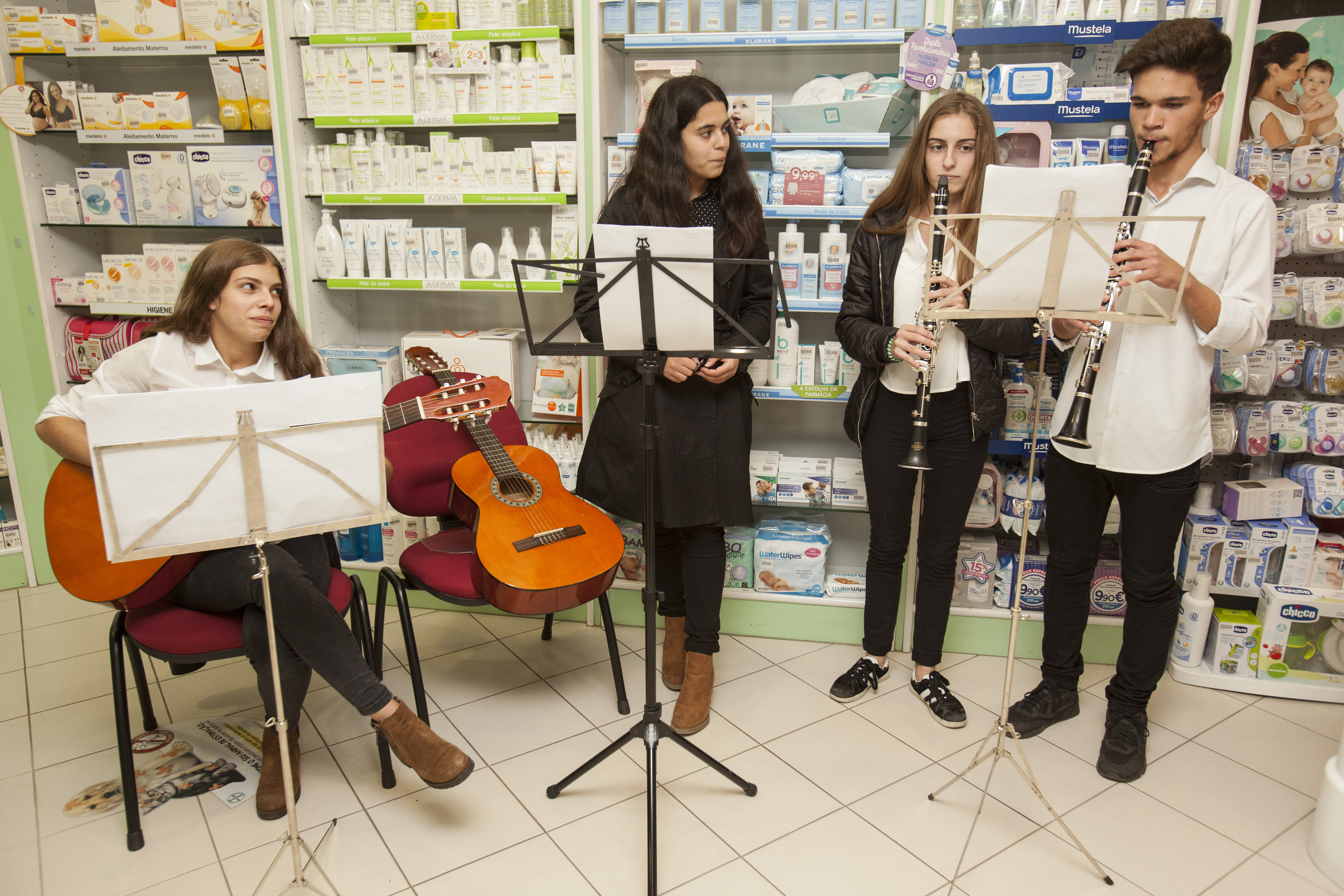 André, Francisca, Inês e Maria interpretam canções de António Zambujo, Salvador Sobral e Sting na farmácia