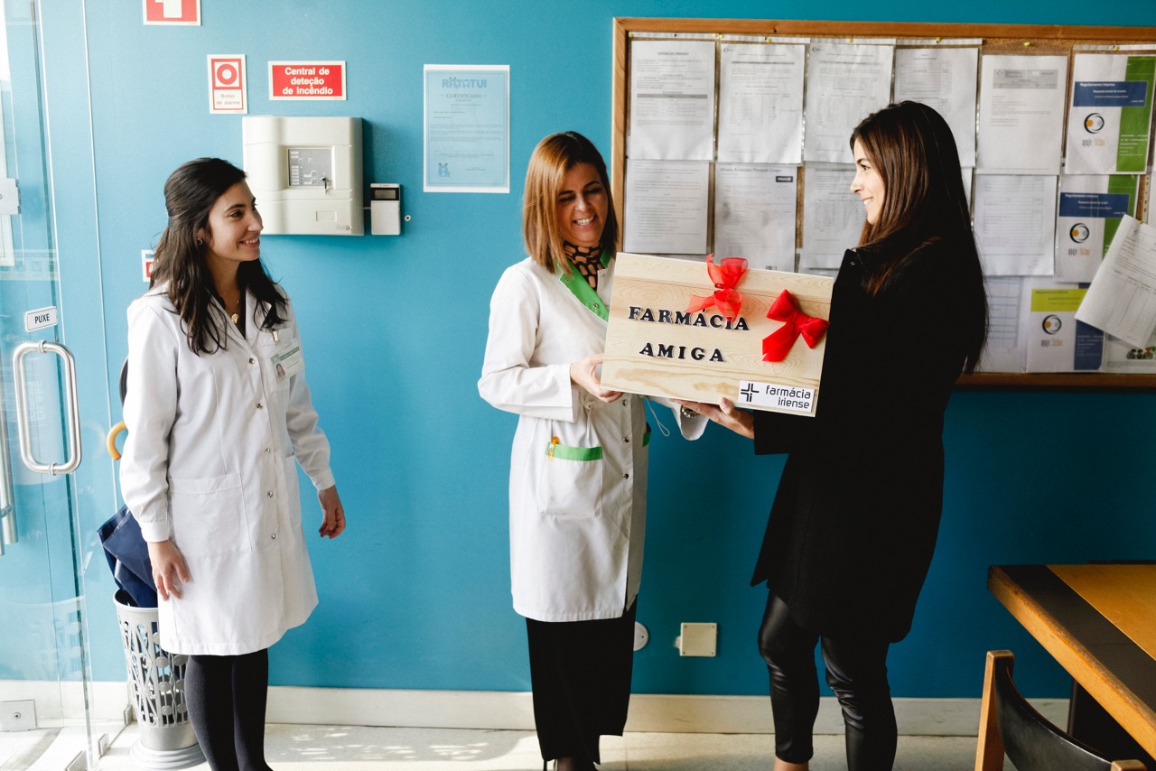 Vista de fora, uma árvore com luzinhas de Natal parece ser a grande protagonista do escaparate da Farmácia Iriense, em Fátima. Mas o olhar de quem entra é logo atraído por uma grande caixa de madeira, aberta junto à árvore. “Farmácia Amiga”, anuncia. Esta caixa nasceu para fazer a diferença. «Todos os anos, no Natal, escolhemos uma instituição de solidariedade social da região e tentamos ajudá-la ao máximo», conta a sorridente directora-técnica, Joana Rocha, de 28 anos.