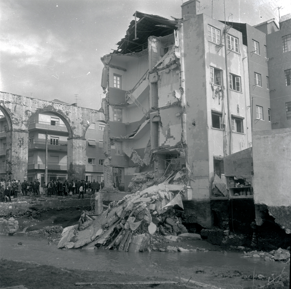Derrocada de prédios em Queluz, próximo do aqueduto e do rio Jamor, provocou mortos e feridos