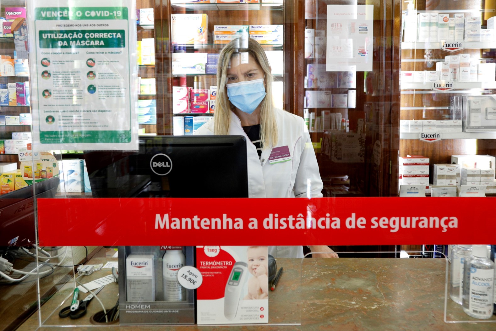Três farmacêuticas e um técnico de farmácia trabalham como loucos para manter a porta da Farmácia Príncipe Real aberta, no centro de Lisboa