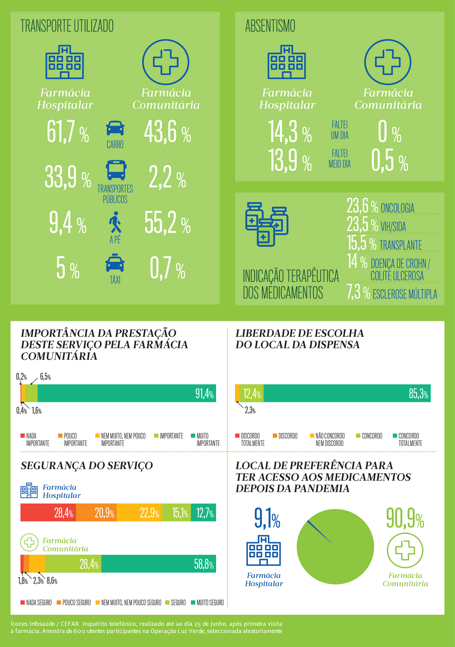 Entre 24 de Março e 31 de Maio, a Operação Luz Verde, assegurou 14.743 dispensas a doentes dos hospitais. Os doentes escolheram qual a farmácia comunitária onde pretendiam receber os seus medicamentos. Sempre que o solicitaram, a mesma farmácia garantiu dispensas ao domicílio.