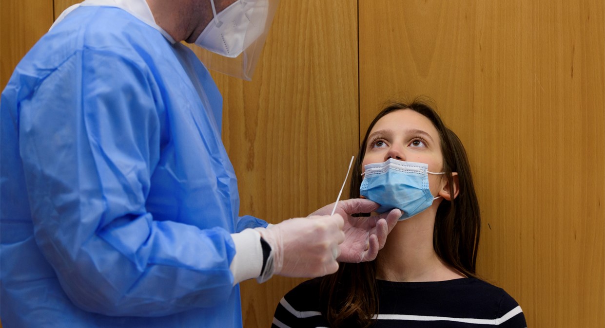 Tranquilamente, Francisco Carvalho voluntaria-se para ser o primeiro. O aluno de 14 anos confessa que o teste «dói um pouco, mas é rápido e acessível». A testagem regular permite identificar e isolar os alunos infetados, protegendo a comunidade escolar. «E assim sabemos se podemos encontrar-nos com os nossos amigos».