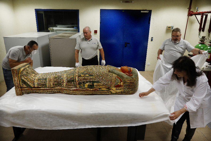 Após um mês a ser restaurado, sendo alvo de limpeza à superfície e do preenchimento de pequenas falhas na pintura do gesso, o sarcófago foi finalmente reaberto.