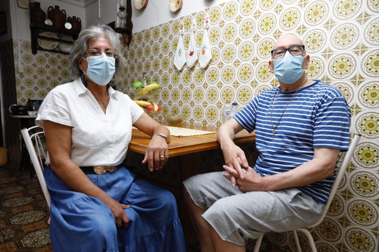 João Manuel Ariano, de 67 anos, reformado da GNR, sofre de nevralgias na cabeça desde 2013. As crises dão-lhe «dores horríveis», explica a custo. Antes da pandemia, a medicação vinha do Hospital dos Capuchos, com a ajuda dos bombeiros. Enviava um e-mail a pedir para a entregarem na farmácia. Desde Junho de 2020, basta lá ir directamente. A farmácia até avisa quando é preciso nova receita. «São muito atenciosas», diz a esposa, antiga costureira e agora cuidadora informal «sem ordenado». «Estamos contentes. Este sistema está a correr bem», afirma Rosária Ariano.