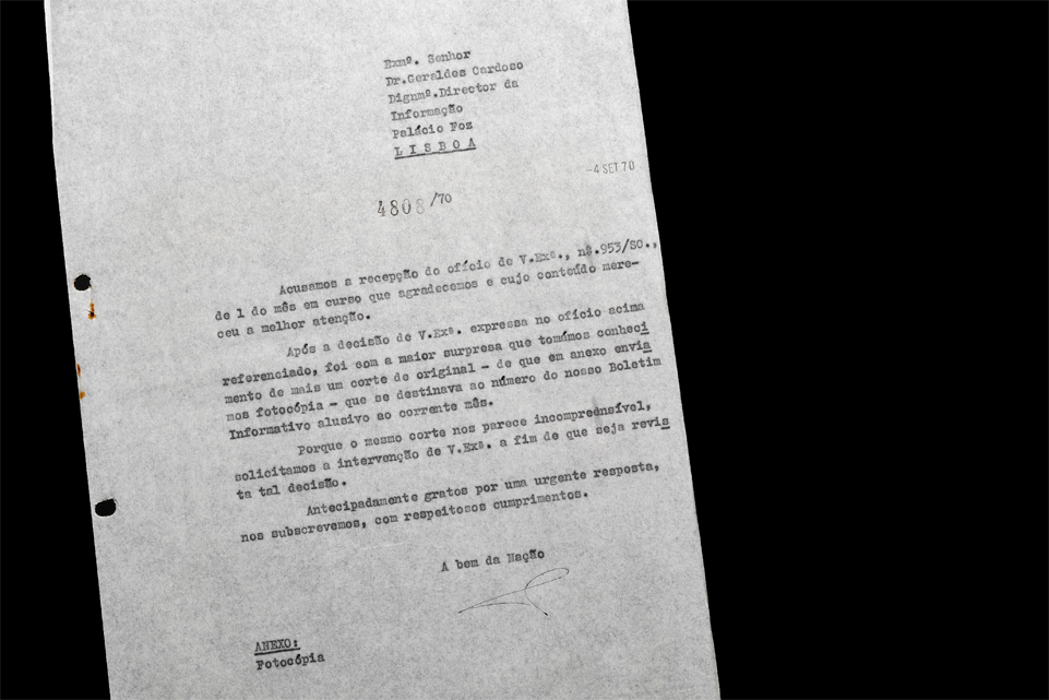 Confrontada com cruzes a suprimir por inteiro três páginas de texto, a Direcção do Grémio reclamou junto do director-geral de Informação, Geraldes Cardoso. Em carta datada de 25 de Agosto de 1970, manifestou surpresa perante tão «incompreensível» amputação. É provável que tenha sido de novo apanhada de surpresa com a resposta, que chegou a 7 de Setembro. Não é que foi autorizada a publicação?