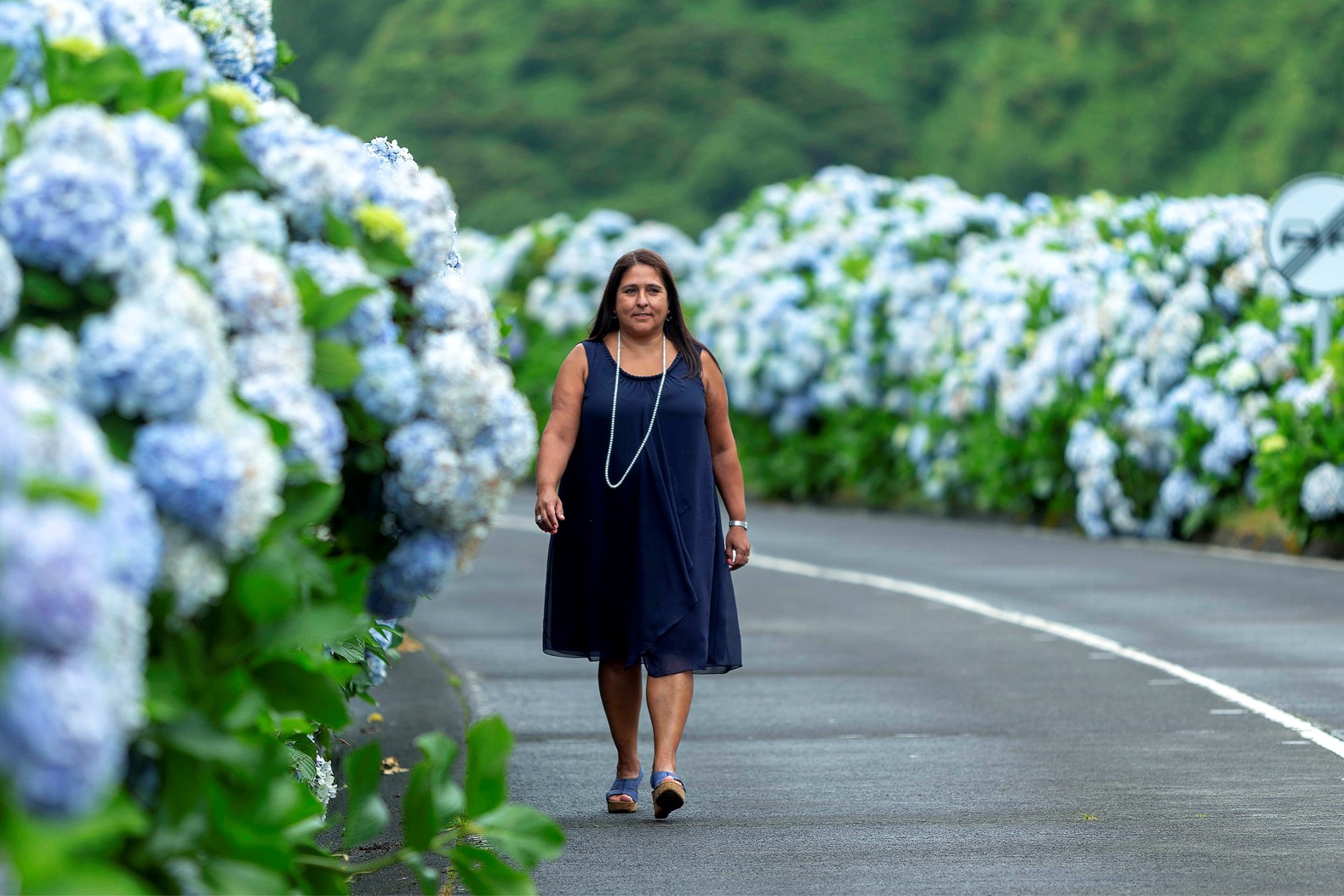 A floresta de criptomérias alterna com pastos ladeados de hortênsias. Aqui os muros fazem-se de flores. Existe quase uma vaca por cada um dos 150 mil micaelenses. No caminho para a Lagoa das Sete Cidades, os arbustos de hortênsias rosa e lilás surgem, primeiro tímidos, depois exuberantes, até formarem filas densas de cada lado da estrada. Lá em baixo, a ponte separa as lagoas, uma verde, outra azul. A alteração de cor deve-se ao reflexo da vegetação na água. Ou talvez sejam as lágrimas da princesa, de um lado, e do pastor, do outro, largadas pelo amor interrompido, como conta a lenda.
