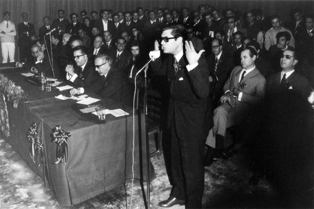 Sessão da Oposição Democrática em Coimbra, 19 de Outubro de 1969. A PIDE ficava impressionada com os discursos de Arnaut, que pareciam imunes ao medo