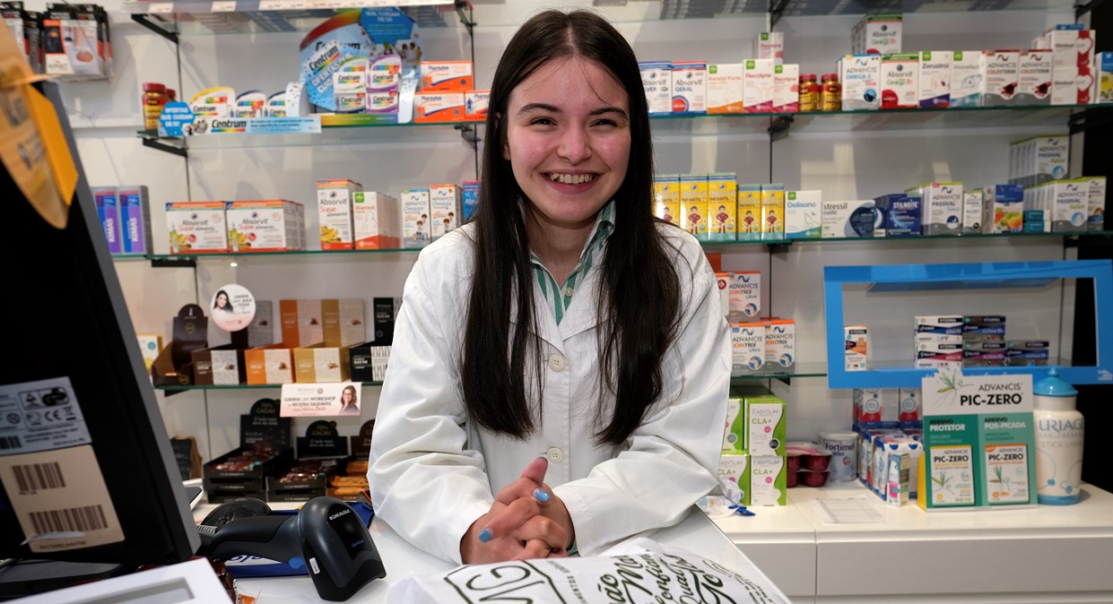 Fala de Beatriz Moreira da Silva, autista. Aos 16 anos, é a mais jovem funcionária da Farmácia Rocha Barros, em Eiriz. Todas as quintas-feiras troca os livros da escola por medicamentos, outros produtos de saúde e a simpatia dos utentes que ajuda a atender.
