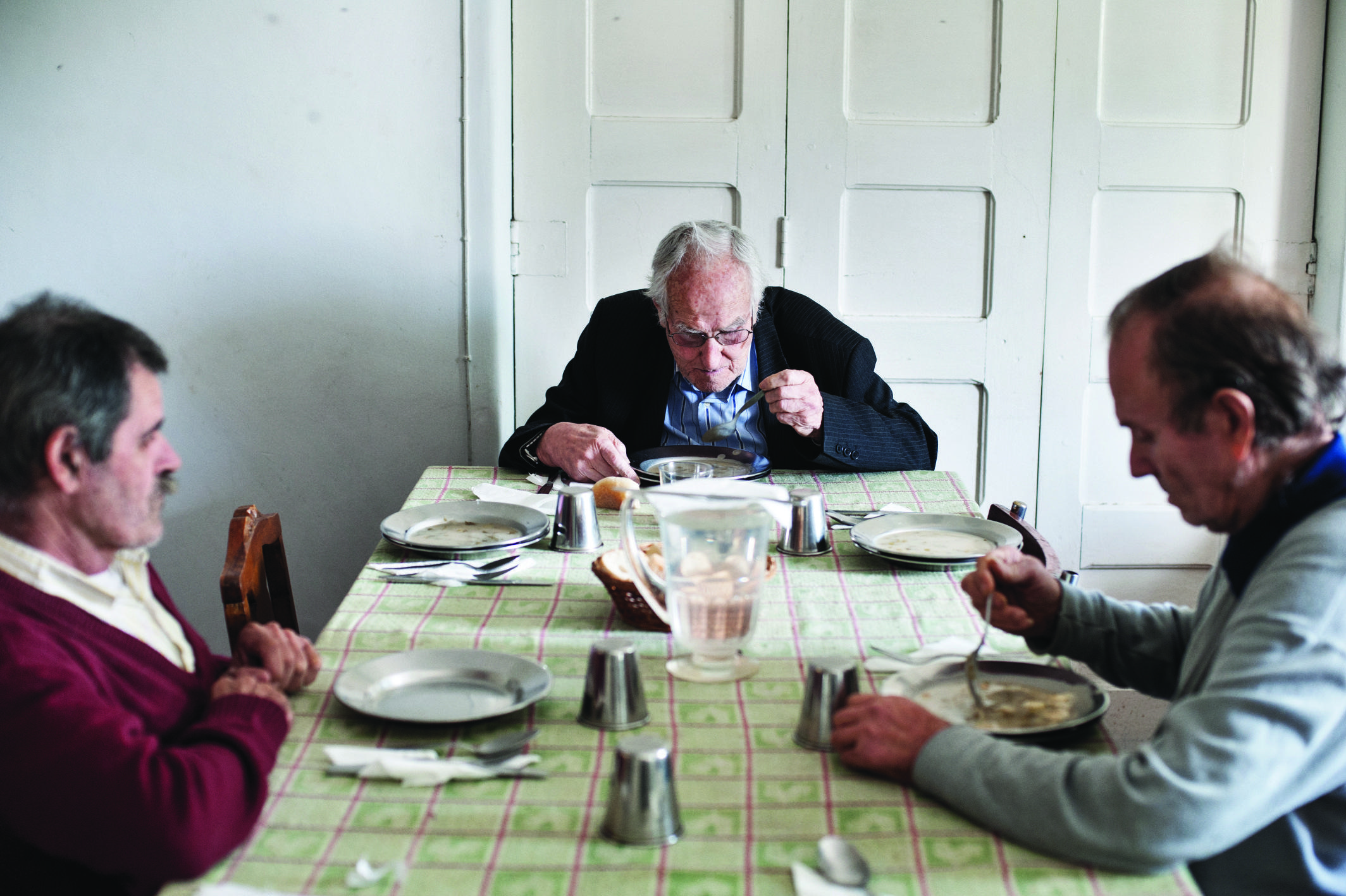 «Vamos comer», a vontade de João Almiro é uma ordem. Entram no refeitório, um a um, em silêncio, porque o «doutor ensinou que a hora da refeição é sagrada». Hoje são 21 andorinhas ao almoço. Dezoito homens e três mulheres. Marina e Elisabete trataram da sopa de alface e da carne estufada com esparguete. São quatro mesas. O farmacêutico senta-se à cabeceira da mais central.