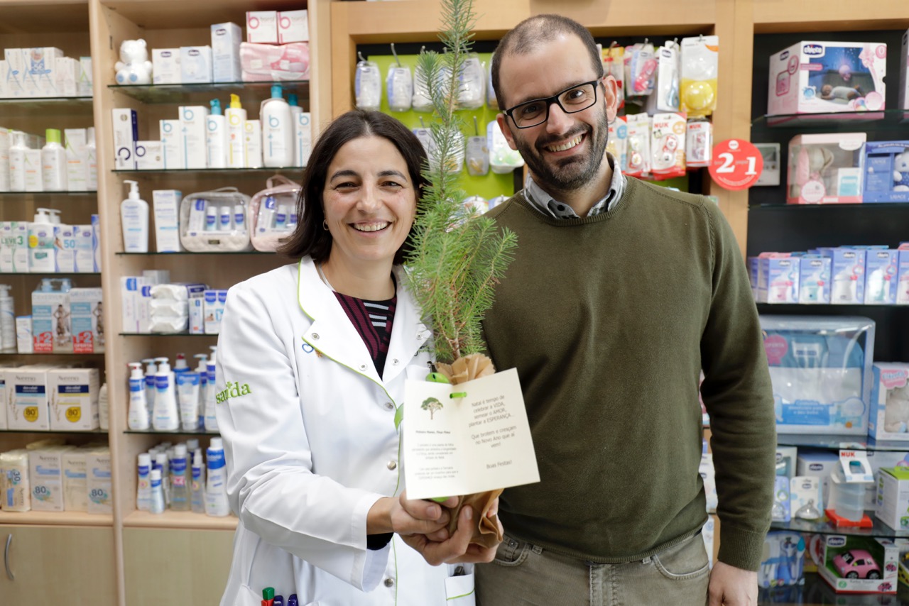 «Em equipa, decidimos este ano dar uma prenda diferente, algo que anime e traga esperança no futuro aos nossos clientes, muitos dos quais foram afectados pelos incêndios», explica a directora-técnica, Cristina Lourenço, que trabalha na Farmácia Lima da Silva há 20 anos. «Queremos celebrar a vida, semear o amor e plantar a esperança».
