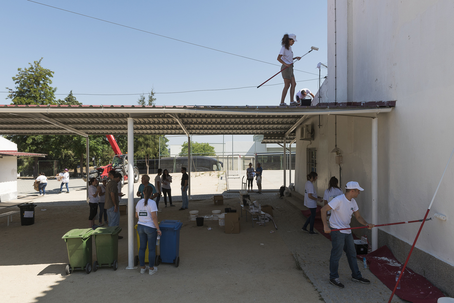 Quando, ao chegar, de manhã, viu a dimensão da escola, confessa que duvidou do resultado. Felizmente, estava enganado. «De facto, sozinhos não conseguimos nada, mas como colectivo fazemos autênticos milagres». Graças à entrega dos voluntários ao trabalho, os três edifícios e o muro da escola ficaram completamente pintados de fresco. A alegria de quem participou é contagiante. «Um por todos e todos por um!», grita, em uníssono, a equipa de Diana Carvalho, enquanto partilha um enorme abraço de grupo.