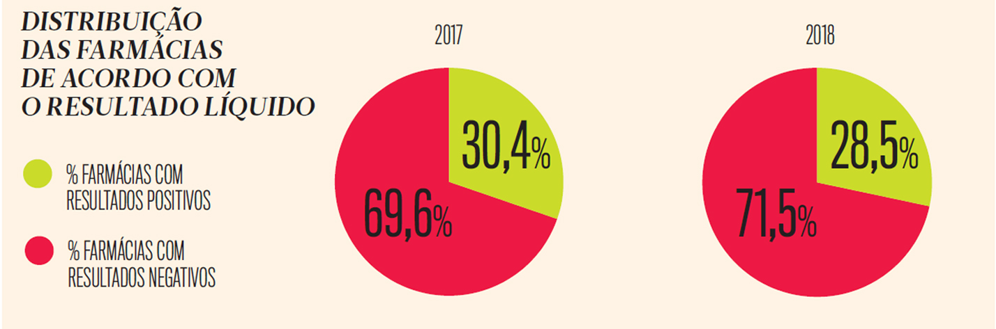 O estudo baseia-se nas declarações fiscais de 1.654 farmácias individuais: 71% acumulam prejuízos com a dispensa de medicamentos comparticipados. As projecções da UA para 2019 indicam que o resultado líquido da farmácia média continua a agravar-se, ainda que a um ritmo mais ligeiro (-17.818).
