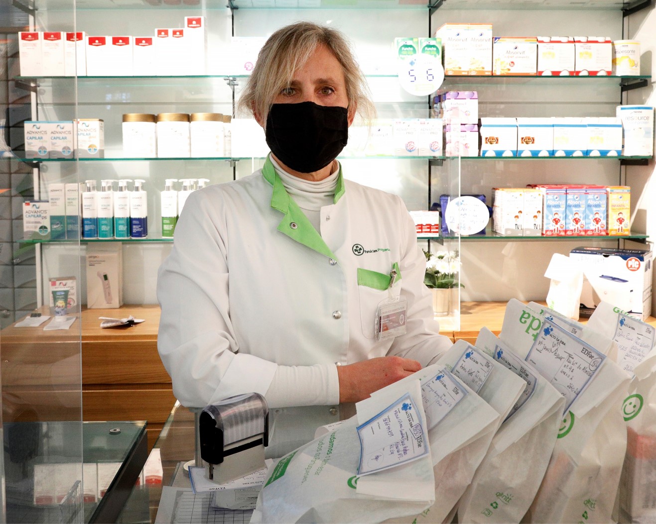 A farmácia passou várias semanas a testar os testes de anticorpos e de antigénio exclusivamente na própria equipa, há meses a operar “em espelho”. Os farmacêuticos e a técnica auxiliar de farmácia trabalham dia sim, dia não, em dois grupos de quatro pessoas, sem qualquer contacto físico entre eles. Para a separação ser absoluta, foi contratada uma segunda auxiliar de limpeza. A directora-técnica ofereceu a um cliente amigo, que estivera internado em Março com uma pneumonia por COVID-19, o teste de anticorpos que lhe parecia mais fiável.