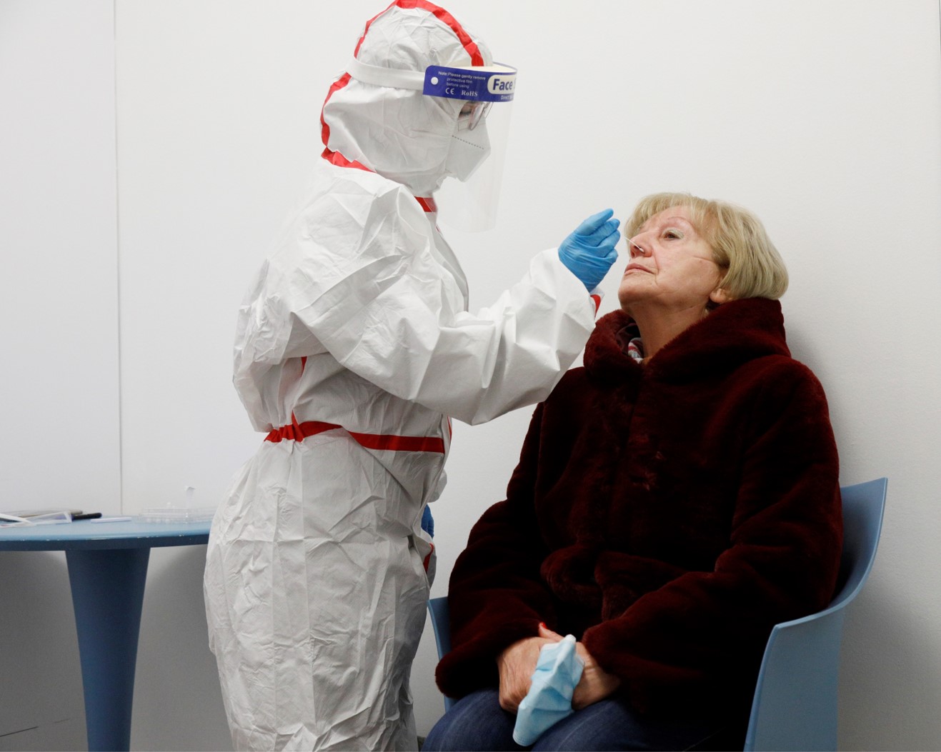Os doentes são recebidos com um protocolo rigoroso, da medição de temperatura à higiene dos sapatos. Os farmacêuticos treinaram cada procedimento ao detalhe. Como vestir, como despir, como desinfectar, como dominar a zaragatoa. Vanda Cabanas investiu em fatos de protecção de classe 2, topo de gama. Eles parecem astronautas, mas sentem-se seguros.