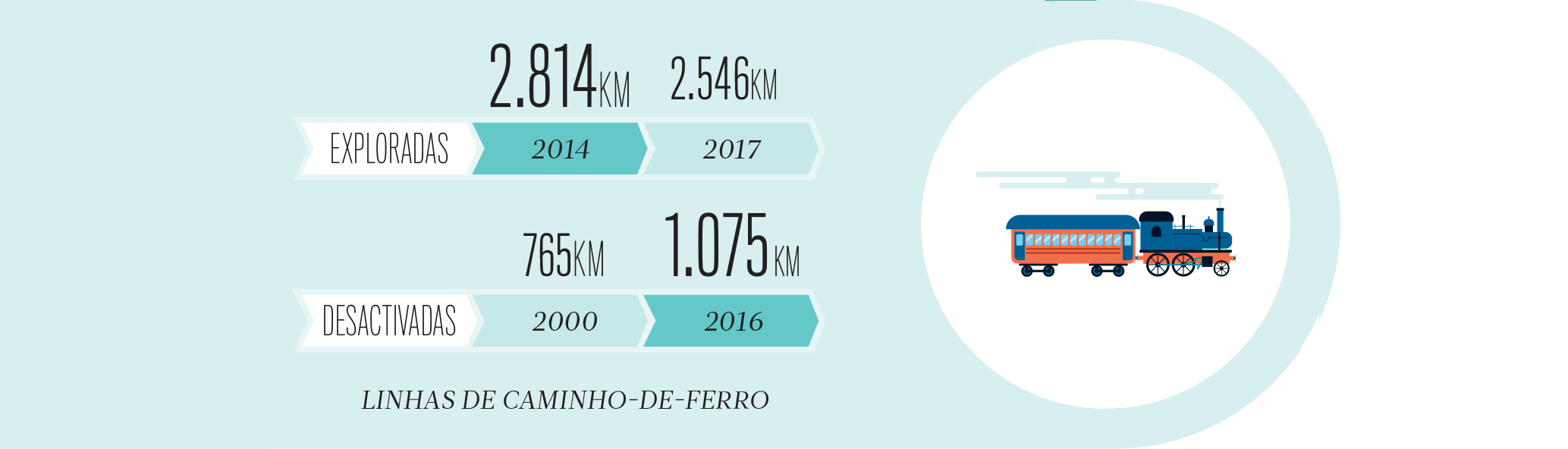A partir do último quartel do século XX foi desactivada quase metade da rede de caminho-de-ferro. As linhas de Monção, Tâmega, Tua, Sabor, Corgo, Vouga, Dão e Portalegre perderam o comboio. A Alta Velocidade e as grandes linhas de bitola europeia, para transporte de mercadorias e passageiros, marcam este século na Europa, mas só existem a partir de Espanha. Portugal é uma ilha ferroviária.