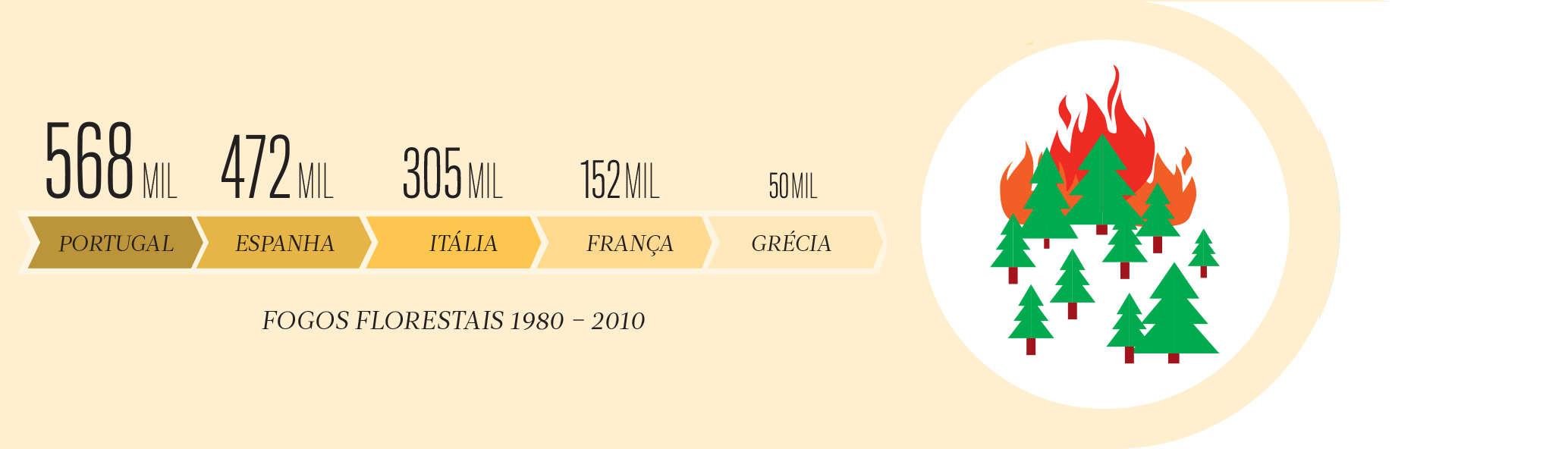 Portugal é recordista europeu de fogos florestais, mesmo quando comparado com os países do Sul da Europa, com clima semelhante, mas muito maior extensão de território. O ano passado, que não está reflectido no mapa, foi o pior de que há memória, com 540 mil hectares de área ardida e 114 vítimas mortais. A desertificação, o despovoamento e a drástica diminuição das actividades económicas ligadas à terra, como a agricultura e o pastoreio, são as causas estruturais.