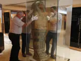 Trata-se de um sarcófago antropomórfico bastante decorado, com as sobrancelhas e os olhos bem delineados e expressivos num rosto suave e arredondado envolvido por uma espessa cabeleira tripartida, da qual sobressaem as orelhas. «É uma das peças mais marcantes da nossa colecção», descreve a curadora do Museu, Paula Basso, «e uma das mais admiradas pelo público».