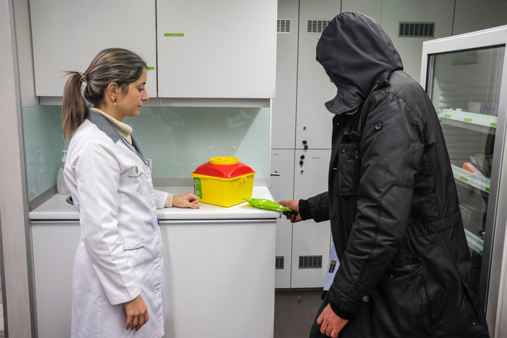Na Farmácia Adriana, o Programa Troca de Seringas (PTS) foi retomado em Janeiro de 2017, assim que o Governo reactivou o serviço nas farmácias. Os ganhos em saúde são «imensos», considera o farmacêutico. «Basta um toxicodependente não ficar infectado para compensar tudo, quer o nosso trabalho no dia-a-dia com ele, quer os custos para o Estado». Outra dimensão prende-se com a saúde pública. Perto da Adriana, fica o Jardim da Sereia, um dos locais de tráfico e consumo de drogas pesadas em Coimbra. «Os nossos filhos vão para lá brincar. Pelo bem de todos, temos de contribuir para não se abandonar lá seringas usadas», lembra João Pimentel.