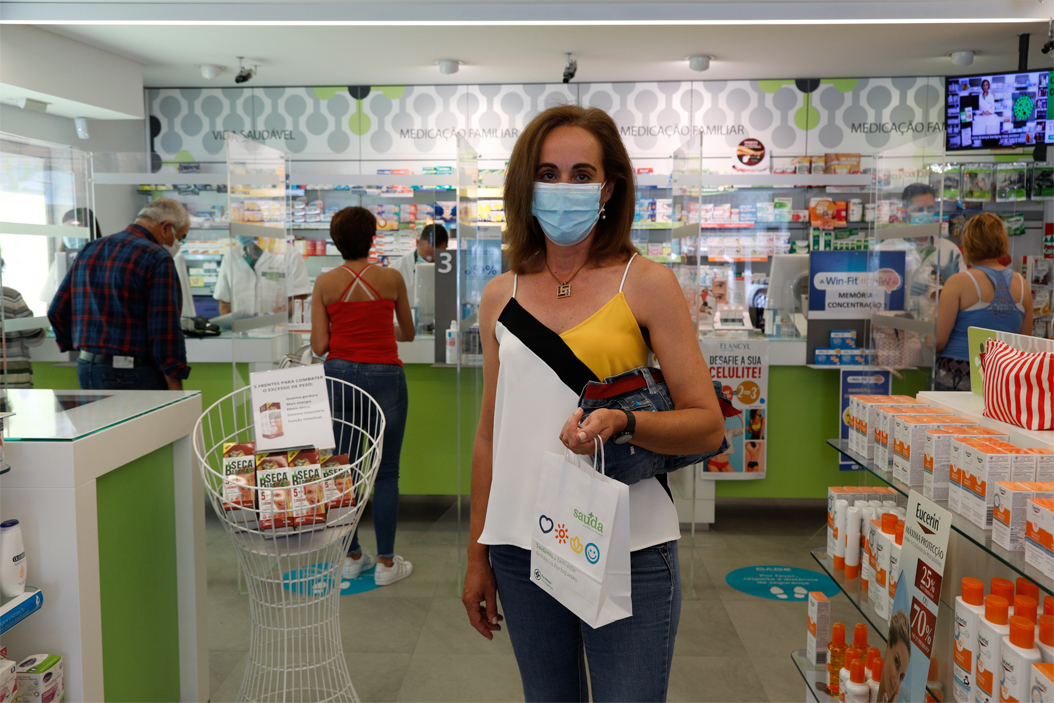 A farmácia também se disponibilizou para entregar medicamentos hospitalares e está disponível para manter o serviço no futuro. Maria Helena Condinho, cliente da Farmácia São Brás há 30 anos, tornou-se uma das duas utentes deste novo serviço. Um cancro na mama diagnosticado há três anos levou-a duas vezes à mesa de operações. Agora está bem. Vive a pandemia com algum receio e não descura os cuidados. «Os primeiros tempos foram complicados em termos psicológicos», confessa. A empresa de handling onde trabalha, no aeroporto de Faro, entrou em layoff e Helena tem-se mantido resguardada em casa, com o apoio da família e dos dois cães, uma grande companhia. Não hesitou quando, em Maio, soube que podia receber na farmácia a medicação hospitalar diária de que precisa como forma de prevenção do aparecimento de novos tumores. Evitou deslocar-se à farmácia do Hospital de Faro, a 20 quilómetros de casa. «Correu tudo bem, gostei do serviço e do atendimento. É uma solução muito mais cómoda», assegura.