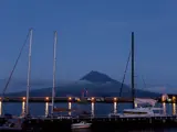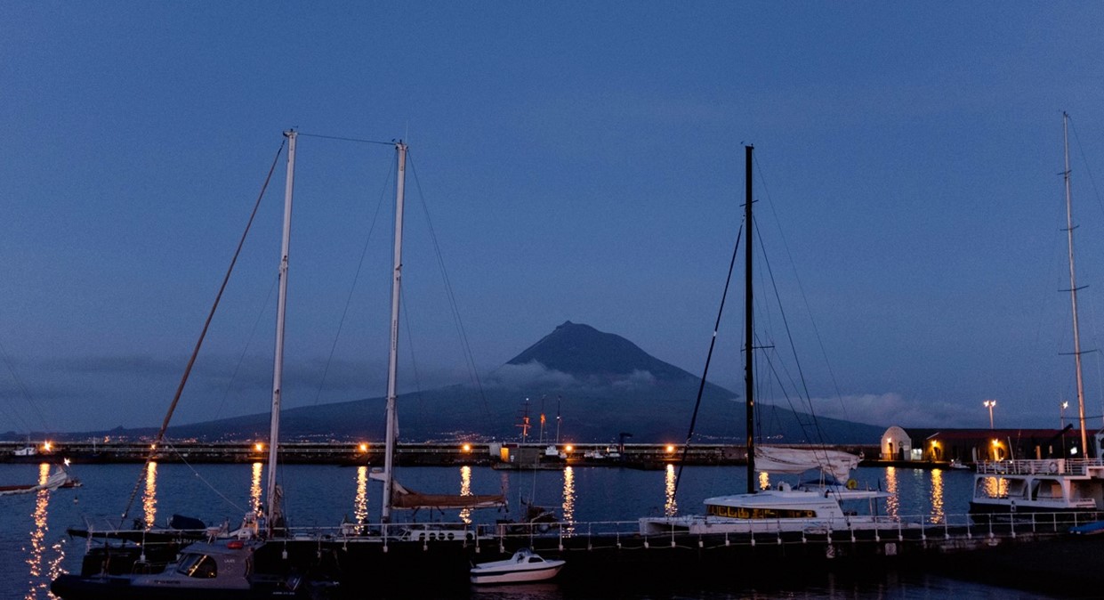 As águas da Baía do Porto Pim movem-se serenas. São poucos os rostos que, a esta hora, 14h20, se deixam ver nas ruas da cidade da Horta. É sábado. Há veleiros atracados na marina e a Montanha do Pico enche a paisagem.