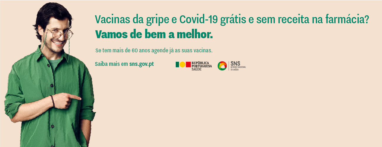 Se tem 60 ou mais anos, pode vacinar-se contra a gripe e a COVID-19 na sua farmácia, sem custos.